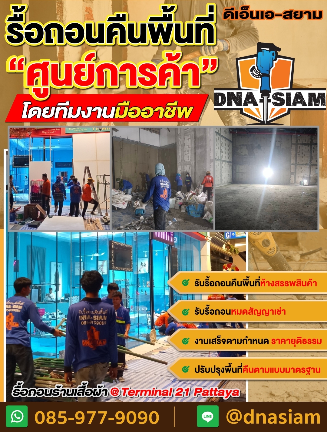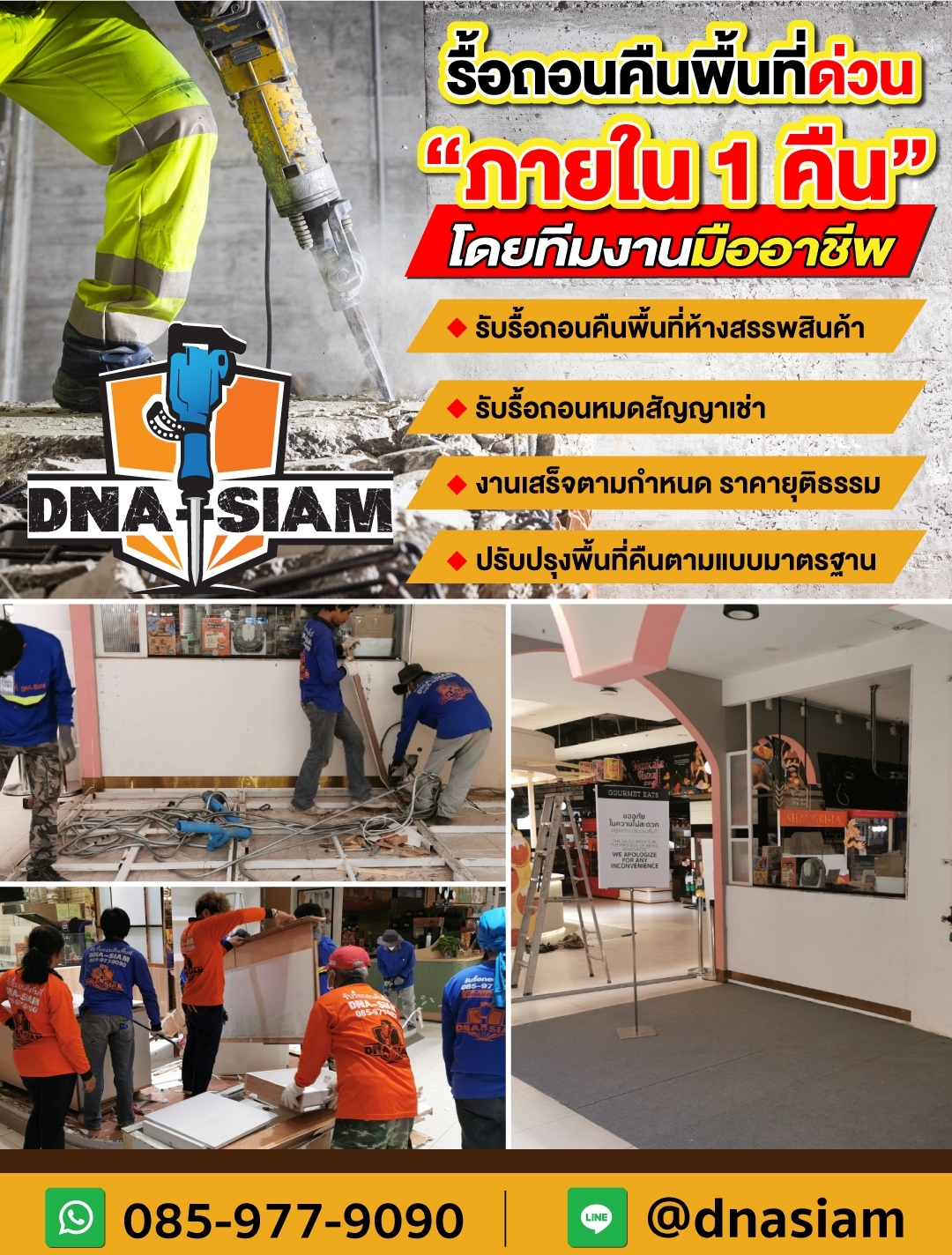 ดีเอ็นเอ สยาม ผู้เชี่ยวชาญงานรื้อถอนร้านค้าและร้านอาหารครบวงจร